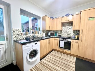 The property benefits from gas central heating, double glazing and briefly comprises:- entrance hallway with stairs to first floor and understairs storage, good sized lounge to the front of the property with feature fireplace and bay window. The kitchen has a wide range of wall and base units with complementing work surfaces, tiled splash back, hob and under bench oven and access to the rear garden. The spacious family bathroom is also on the ground floor and comprises of three piece white suite with shower over the bath. To the first floor there are three generous bedrooms, the master sits to the front of the property with built in storage cupboards.