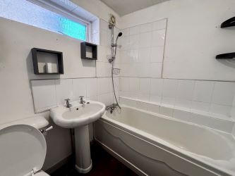 As you step inside, you are welcomed by a spacious living room to your left, complete with built-in cupboard space for storage. Moving through to the rear, the kitchen offers ample countertop space, making it a practical area for meal preparation. Just off the kitchen, you’ll find the bathroom, fitted with a shower over the bath.