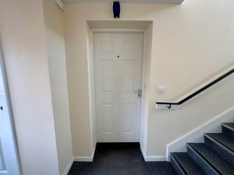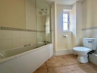 Access is via a secure intercom entry system, entering into the apartment you have a welcoming hallway that connects to the majority of rooms. On the left, you'll find the bathroom, fitted with a modern three-piece suite including a bathtub with overhead shower, hand wash basin, and WC. To the right is the second bedroom – a versatile single room, perfect for guests or a home office.