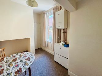 The property features two generous reception rooms, each with a character fireplace. The main reception room is bright and airy thanks to a large bay window and offers an inviting space for relaxation or entertaining. The second reception room includes built-in storage and the added convenience of a WC attached, enhancing its practicality.